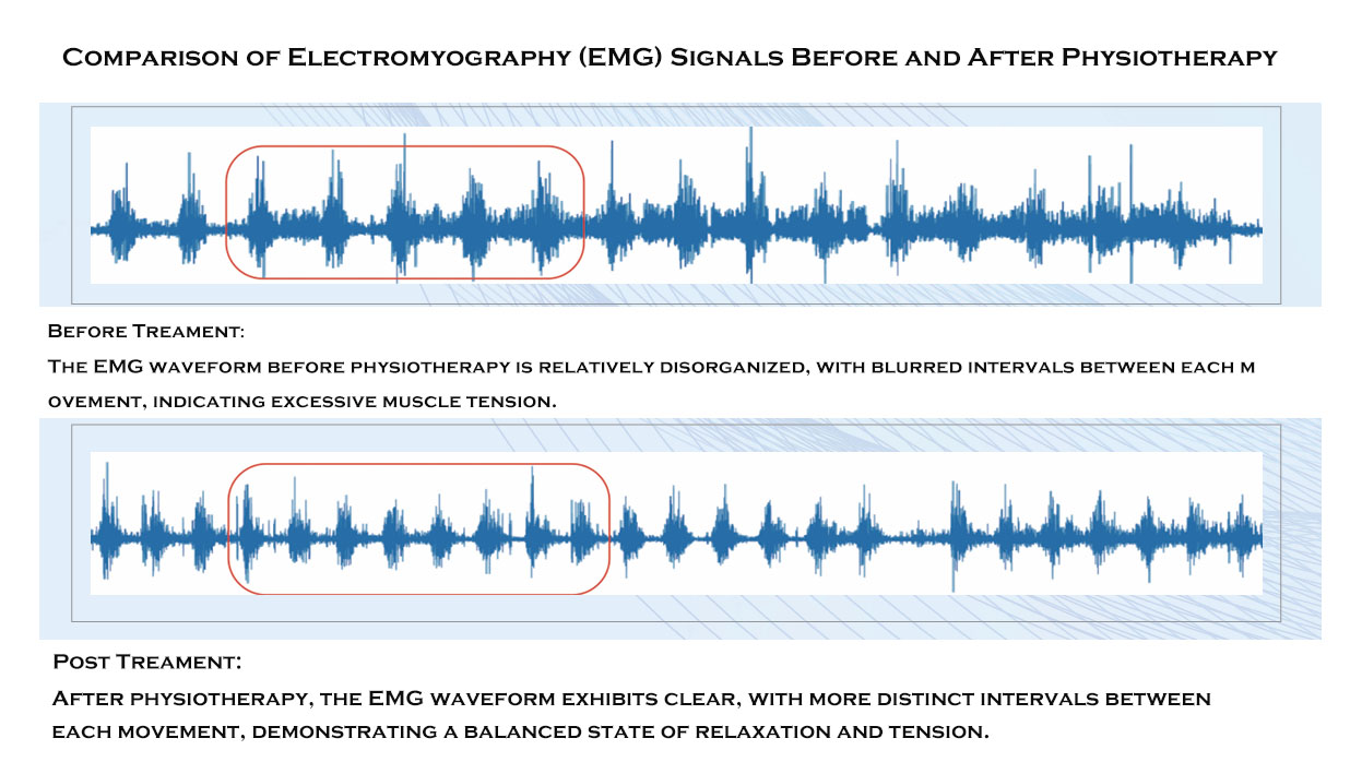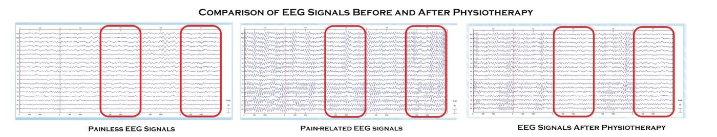 *After therapy, the EEG signals periodically exhibit stable characteristics similar to those observed during the resting state, reflecting the brain’s effective suppression of pain perception and its gradual return to a calm state.
